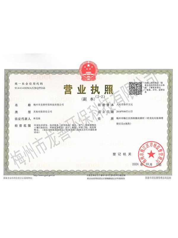 梅州市龍善環(huán)保科技有限公司為龍善環(huán)保股份有限公司(簡稱“龍善環(huán)保”)子公司。龍善環(huán)保于1995年12月成立,注冊資本為人民幣6,000萬元,總部位于深圳市南山區(qū)月亮灣大道2078號兆龍大樓16層。公司經(jīng)生態(tài)環(huán)境部、廣東省生態(tài)環(huán)境廳、深圳市生態(tài)環(huán)境局、深圳市交通運(yùn)輸委員會、深圳海事局等部門許可專業(yè)從事陸地和海洋環(huán)境保護(hù)產(chǎn)業(yè)的高科技民營企業(yè),主要經(jīng)營業(yè)務(wù)包括工業(yè)廢物收運(yùn)、資源化利用和無害化處理處置、海洋船舶污油水接收和集中處理處置、突發(fā)環(huán)境事故清污應(yīng)急處置等......